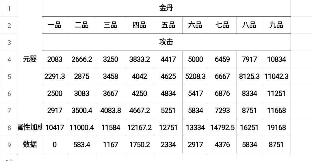 金丹数值是固定值,固定值加金丹每个境界的基础数据就是金丹加成的实际数据