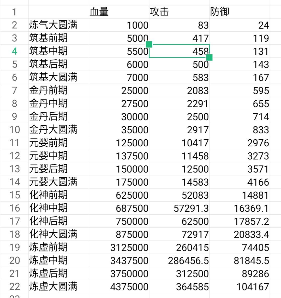 炼气大圆满到炼虚大圆满的基础属性,可能有一些出错的数据 ,有道友看出来可以指出来