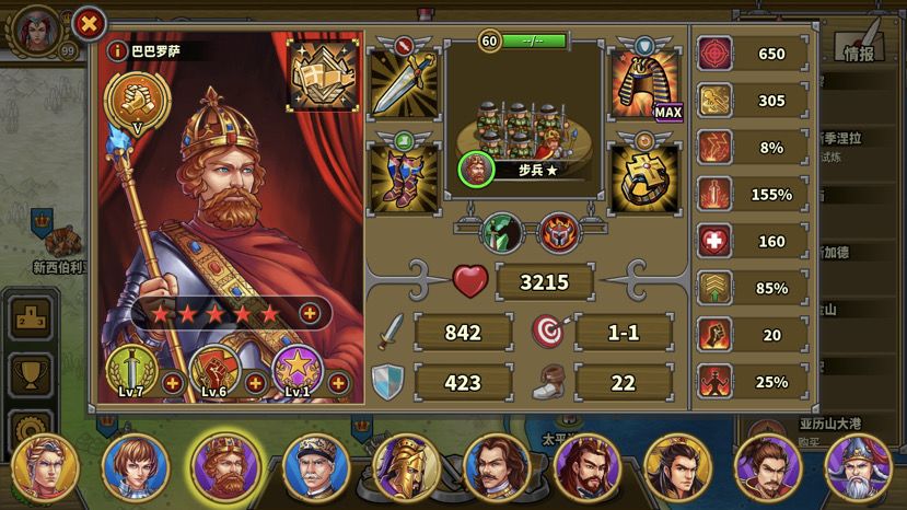 步兵试炼前5关都比较简单,从步兵6开始难度提升。这关有弓8那味,都是环形+16回合+全清全占。步6对配置和技术都有一定要求。上路敌方骑兵伤害较高对步加伤,还有谣言炮。下路弓兵降攻破甲,步兵双击。城堡大约有3000血。因此,伤害和续航都得保证。
