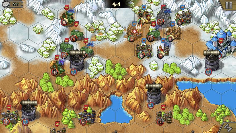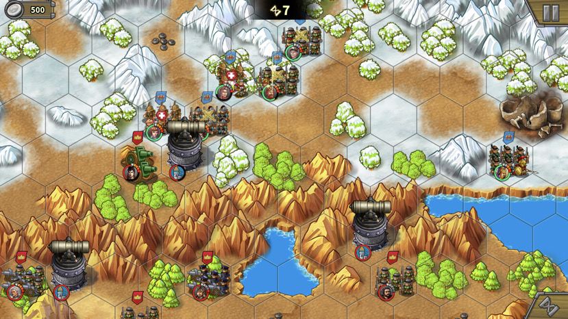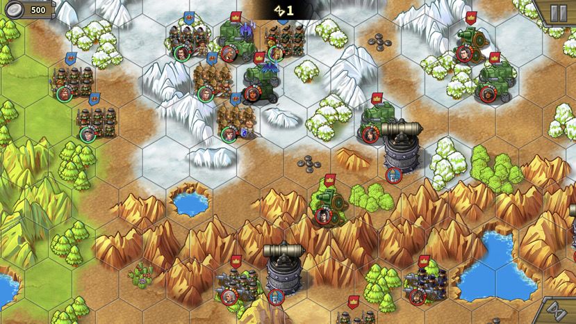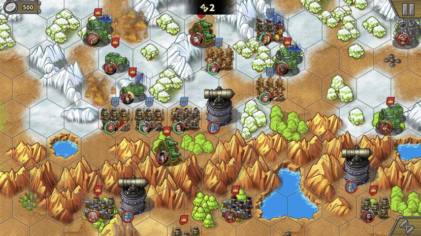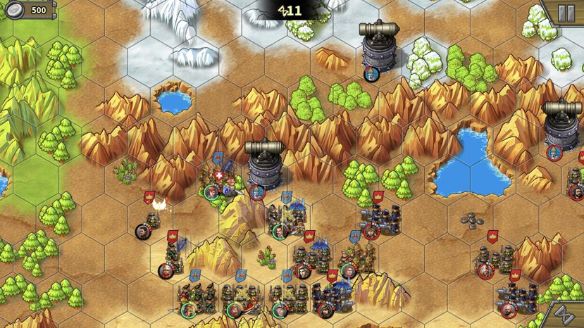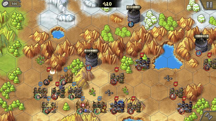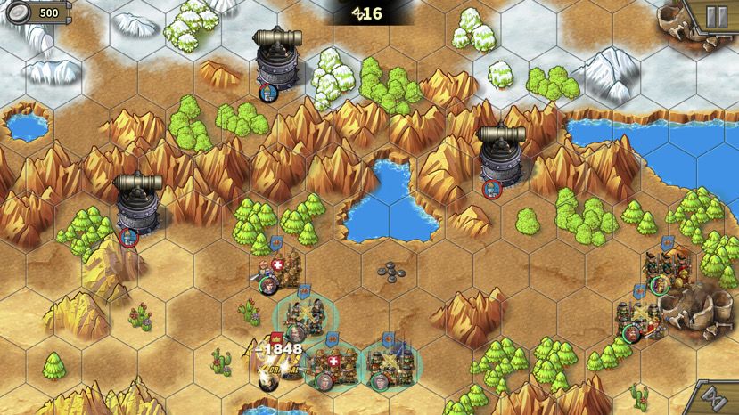 第二回合,骑兵被引过来,通道打开,肉往前冲,注意也别冲太远,离开狭窄山脉夹缝就好,不要吸引后面的骑兵和炮,等人多的时候再上。落后的巴巴和贝当跟上。