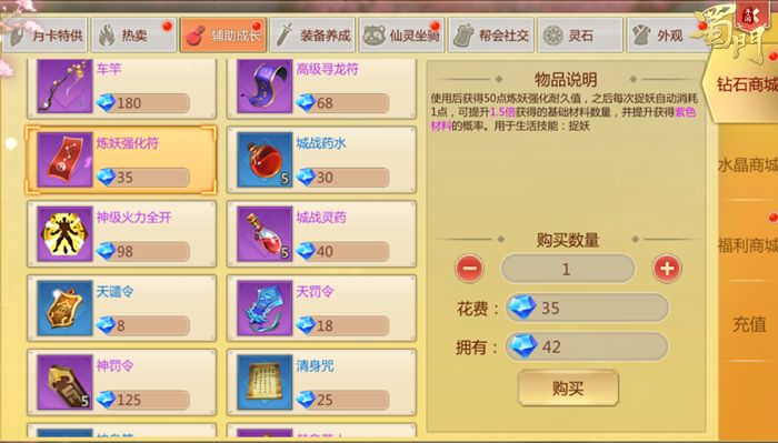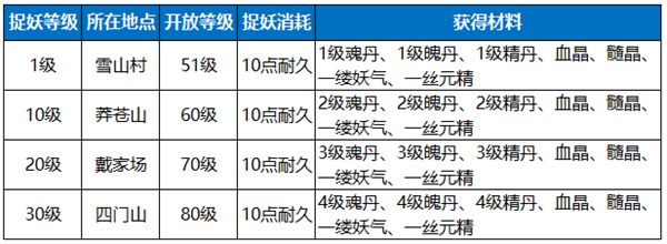在指定地图抓住小妖们获取他们的妖丹、魄丹、一缕妖气等材料用于制作魔石,为装备附魔获取限时强力战斗增益和战力加成。