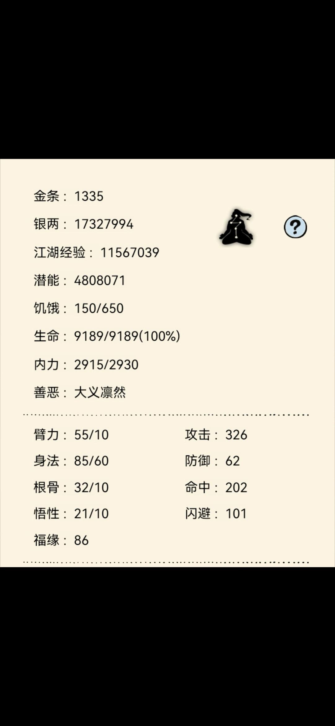 选择一个有根骨的装备(臂力应该也可以)卸下然后装备就可以出现内伤