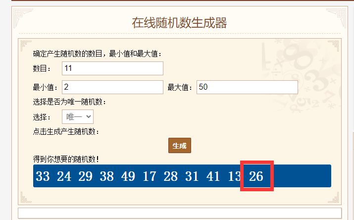 因此本次抽奖共抽10位小伙伴,随机数工具截图如下: