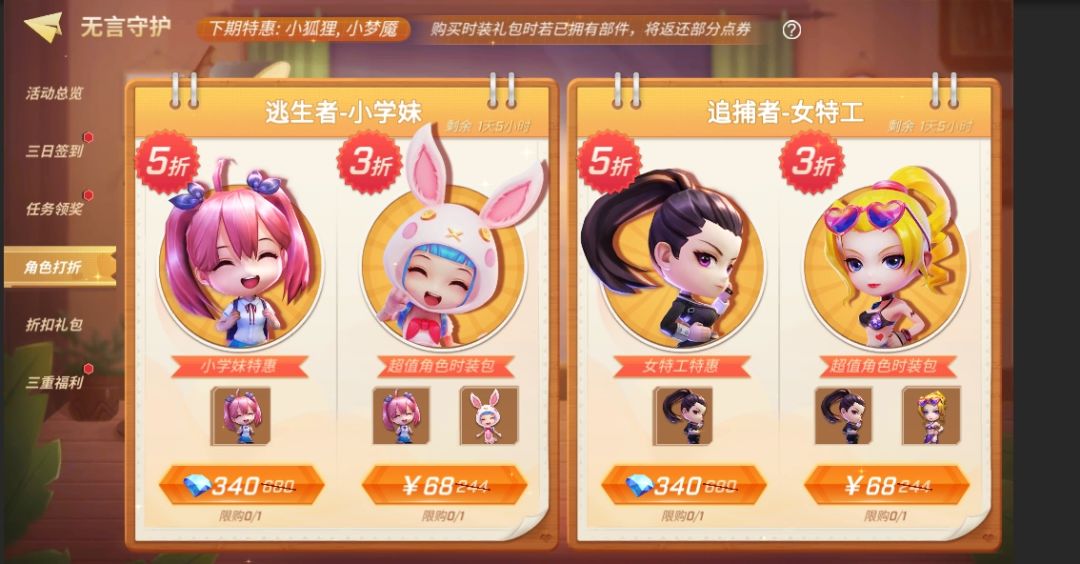 另外,少年们需注意活动期间内,会定期更换特惠出售的角色,有心仪角色特惠出售的话请注意不要错过了~