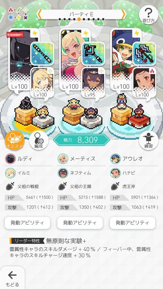 而爆弹雷因为输出平滑,能长时间维持fever,所以队长技30回转收益就很稳定