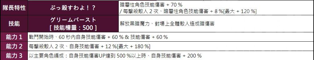 被动技的加成一般都很有限,这里我们选择靠奥义拉技伤,用太母加技工的组合,太母奥义100技伤,技工奥义120技伤,合计220,加上黑猫本人初动190技伤,合计410,只需要再补90技伤就够了。