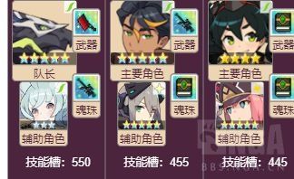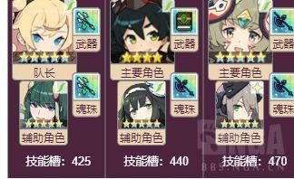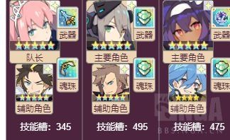然后找出各属性盘里能与这几个角色组盘的盘并确定这几个盘的本属性核心(五星)(除开上述四位)