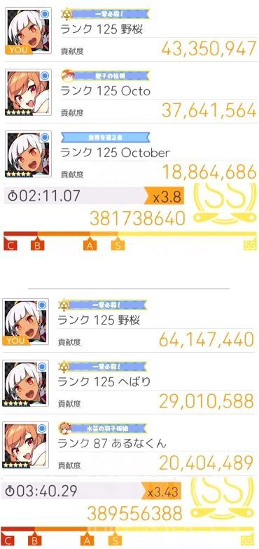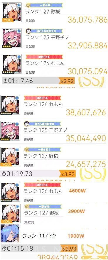 从2分(3人输出几乎一样时候)到接近5分(自己输出是第二名的1.5倍以上,第三名的3倍以上)都有