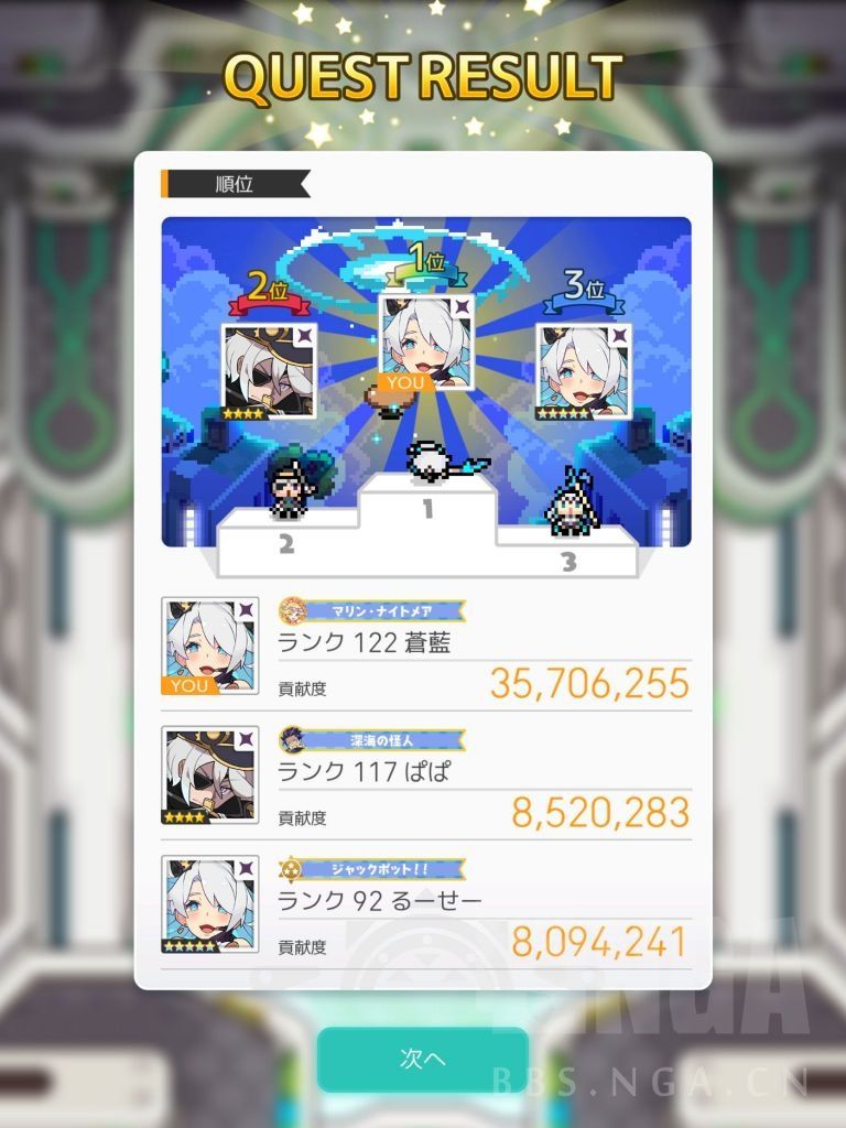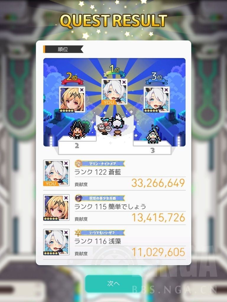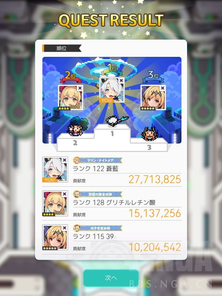 最后关于通关时间 我队友是一个普通暗背水和一个等级略低的顶配暗直击 我控了背水大概1分40S左右解决战斗 贡献2800-3300不等 如果我不控 大概2分钟打完 我的贡献只有1400K(因为最后一轮大招还没打出来他们就把BOSS打爆了)