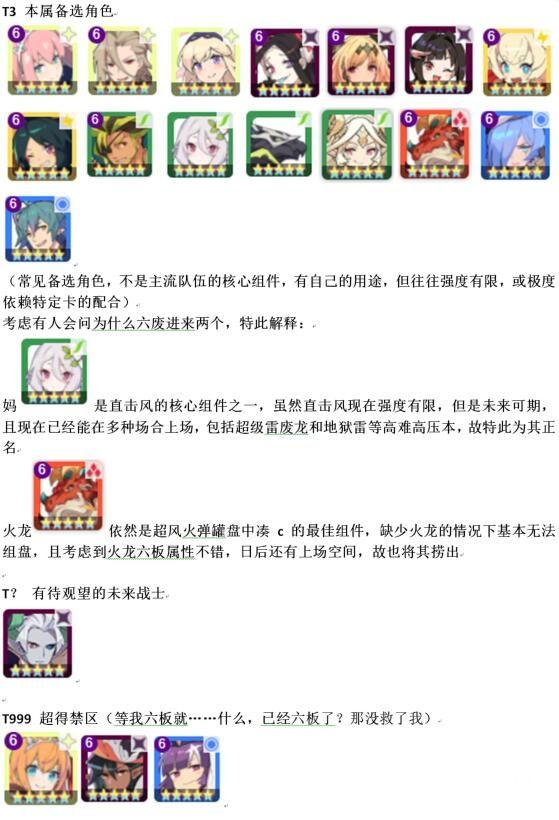 3.其他角色评价以单属地位和用途为主,考虑到超得是基于已有box的补充,故和人物的绝对强度并不是完全画等号