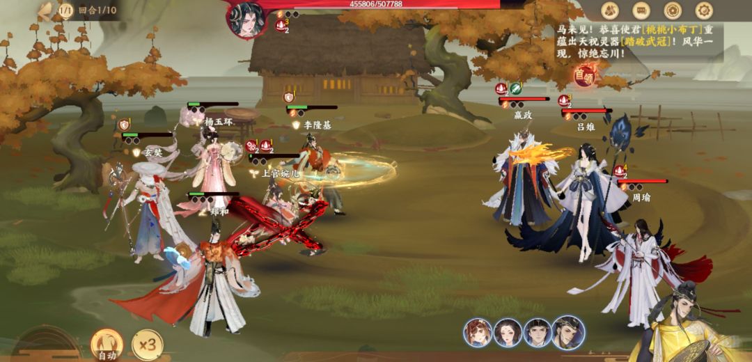 同样的,在这次活动里,首回合通过特性技能提高全队防御的唐明皇,基本上也是必上。而与杨玉环的天命羁绊能造成减攻,更是大大提高了己方其余名士的生存能力。毕竟还是那句话,只要没有被秒,就又给流血创造了时间。而且,李隆基的速度可以跑过大部分重冠和恶羽,给己方的生存提供了大量的可能性。