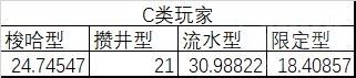 第一部分 不同氪金类型玩家计算结果: