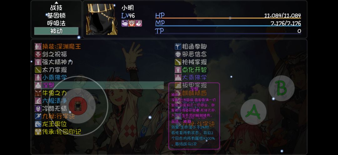 被动效果:战斗中血量低于最大生命值1%时,清除自身所有buff,HP(血量)MP(蓝量)回满,获得持续两回合的全属性×200%