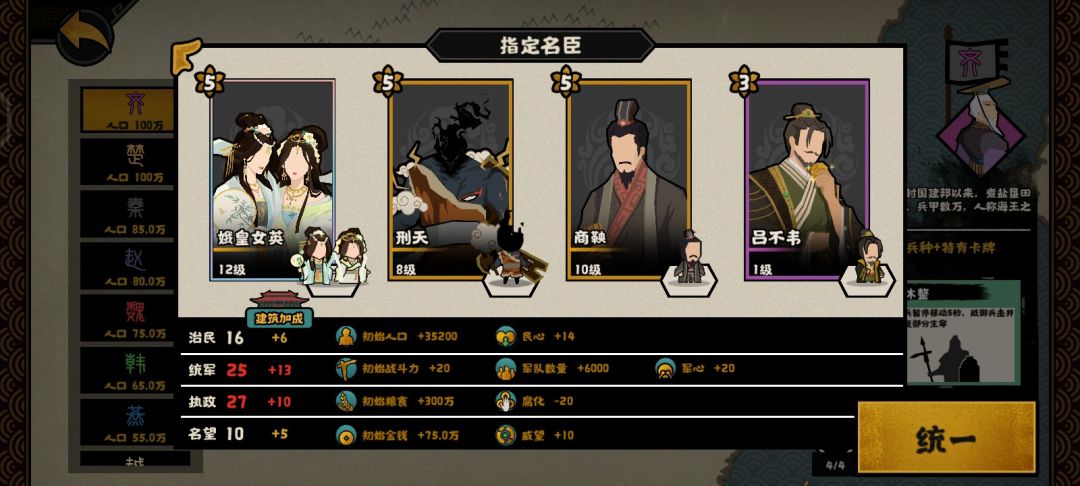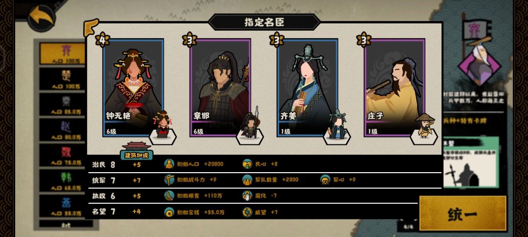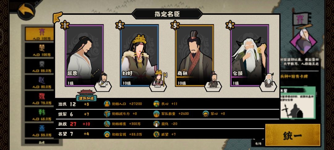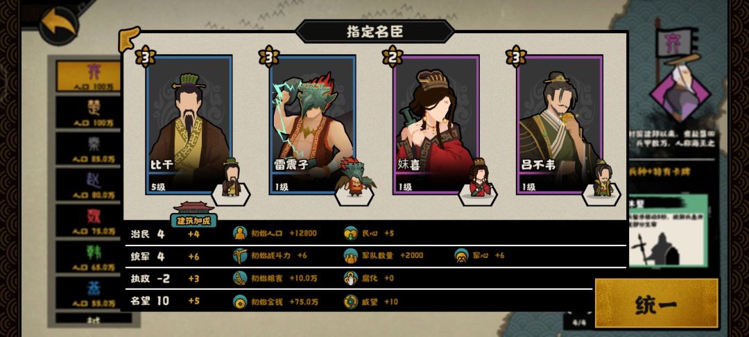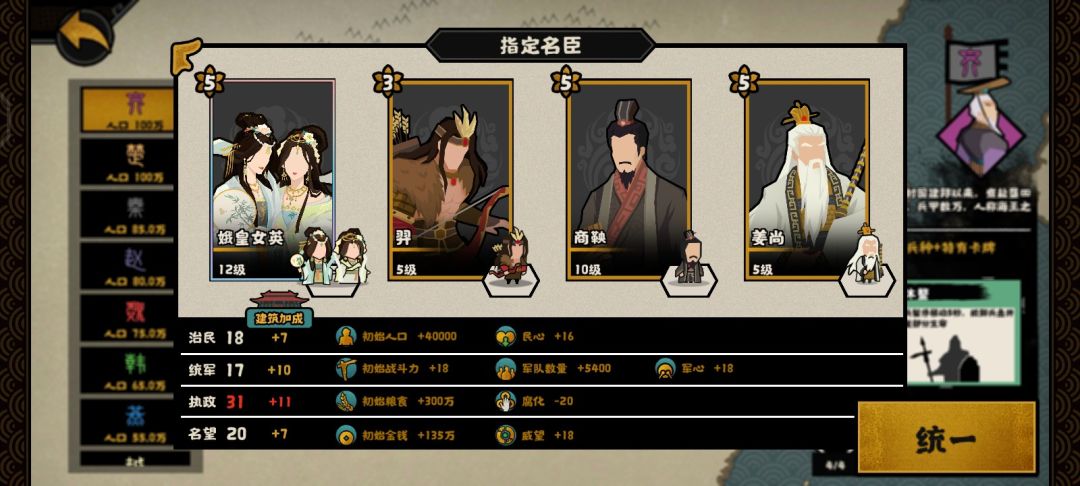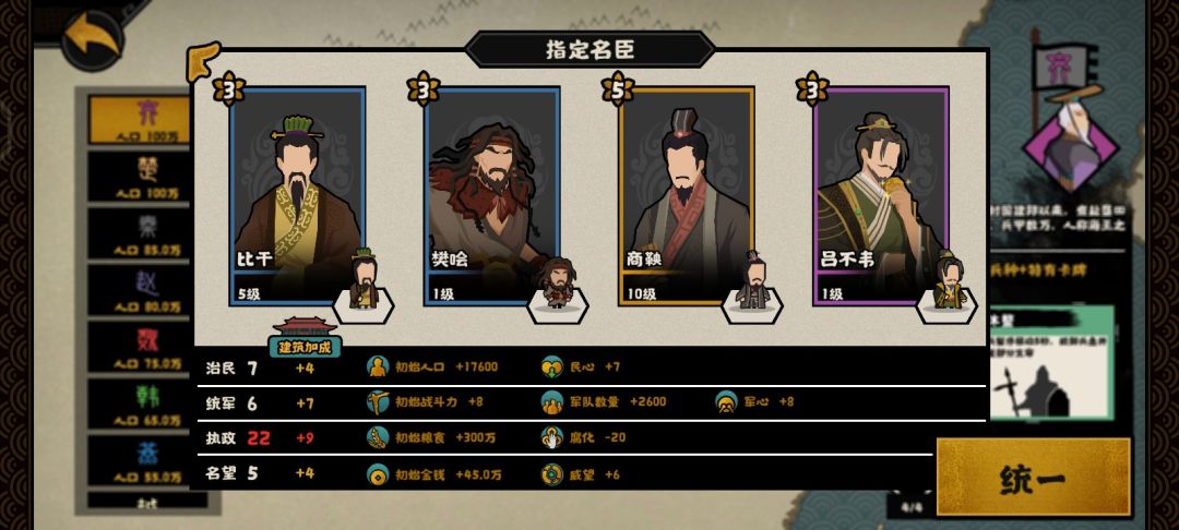 (挑战模式吕不韦换别的,不然特殊资源消耗实在太大,可以换姜尚,王佐别点就行)
