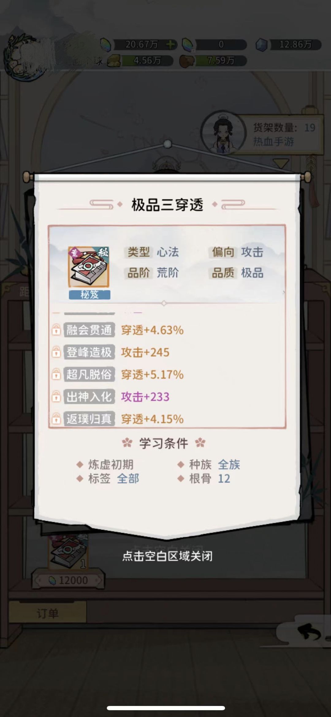 PS:当你参悟出来的秘籍御宝是混合属性的时候,三条同样属性最优,其次就按照强度属性越多越珍贵!