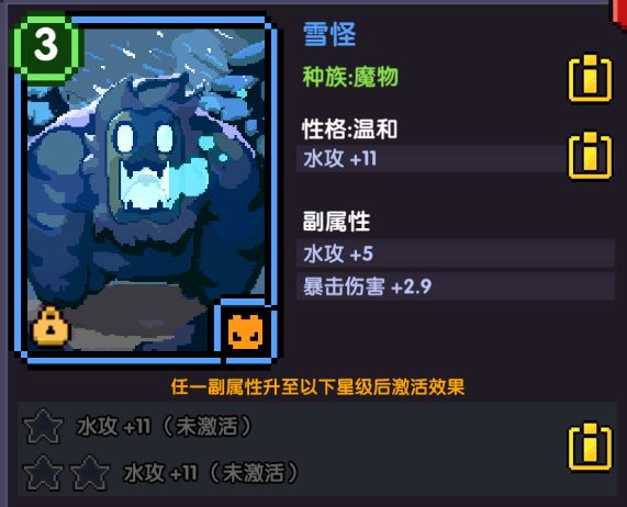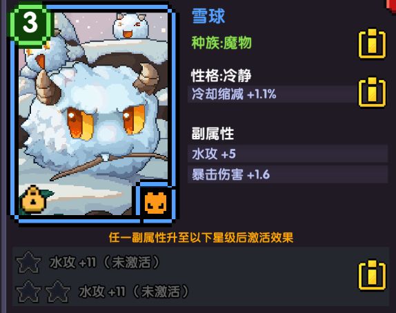 雪怪,保留推荐等级:3级(满级5级)