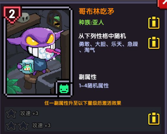 哥布林吃矛,保留推荐等级:1级(满级5级)