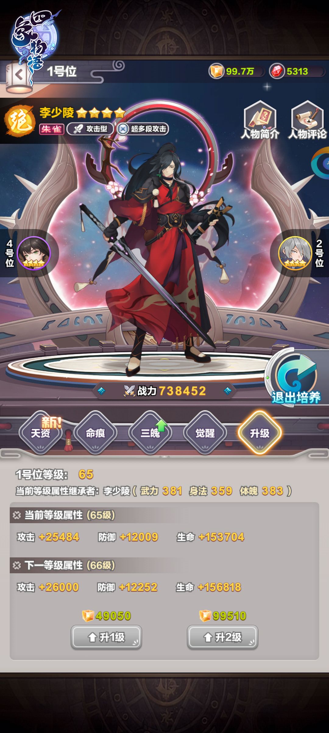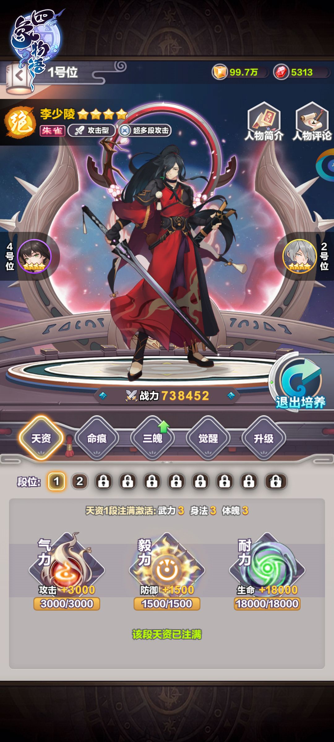 高级属性的提升在战斗中的收益很大,各位星主大大不要忘了在突破后,将天资也做相应的提升哦。