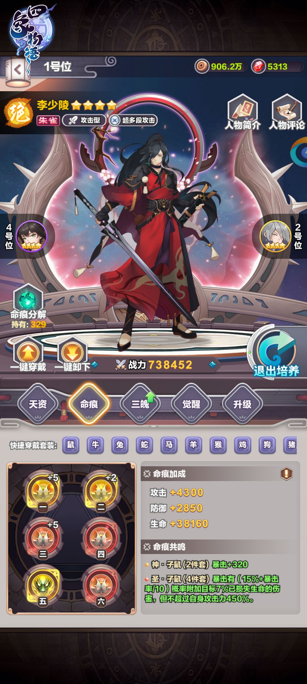 套装共鸣则是佩戴数个同种生肖的命痕可激活的属性,每个生肖的命痕分6个部位,分别穿戴2、4、6件相同生肖的命痕即可激活对应的套装共鸣。