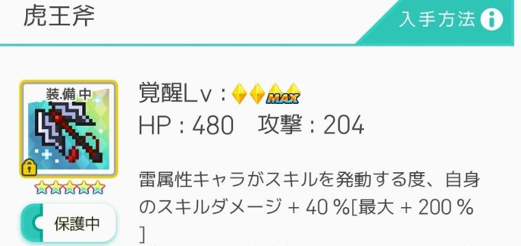 虎王斧:雷属性角色发动技能时,自身技能伤害+40%[最大200%]