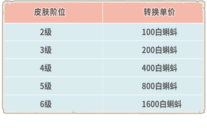 -皮肤重置的消耗,和皮肤等级有关,具体消耗如下: