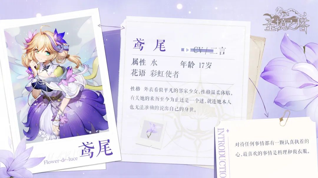 除了温柔体贴,最能描述鸢尾的词汇可能是神秘,就连情报充足的莫古也不知道鸢尾的来历,只能隐隐约约的感受到她背负着相当沉重的使命,有着曲折的过去...
