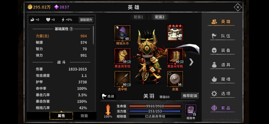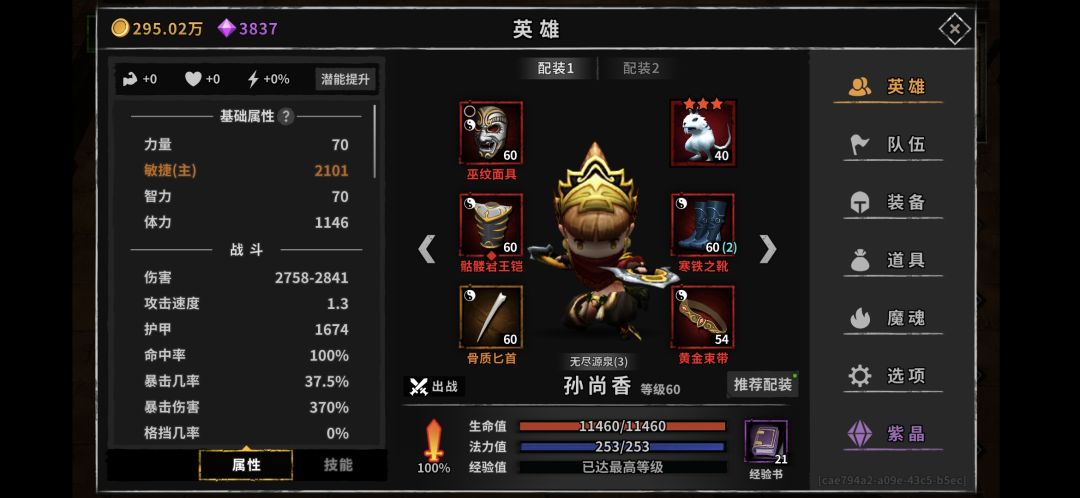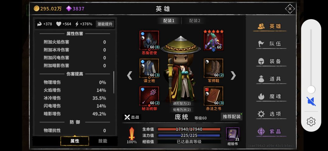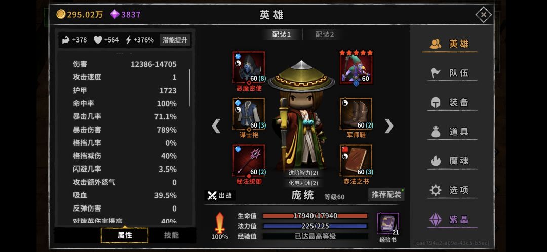 庞统:夜魔桶正常配置即可本人菜逼面板