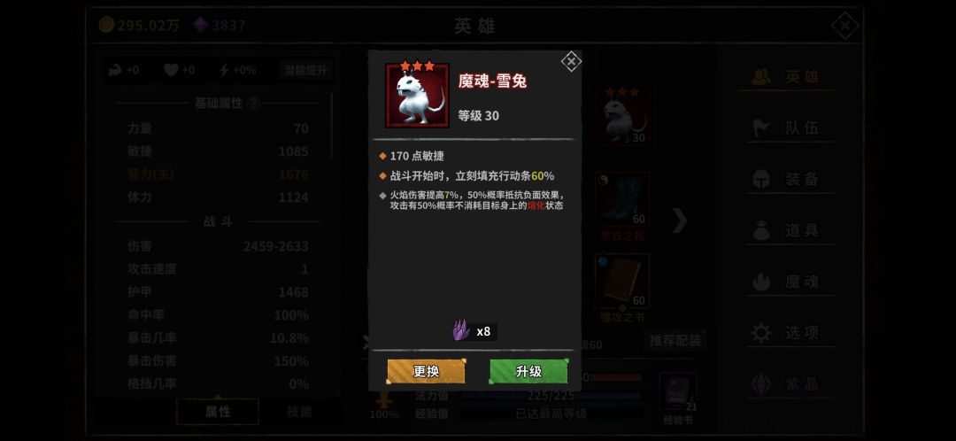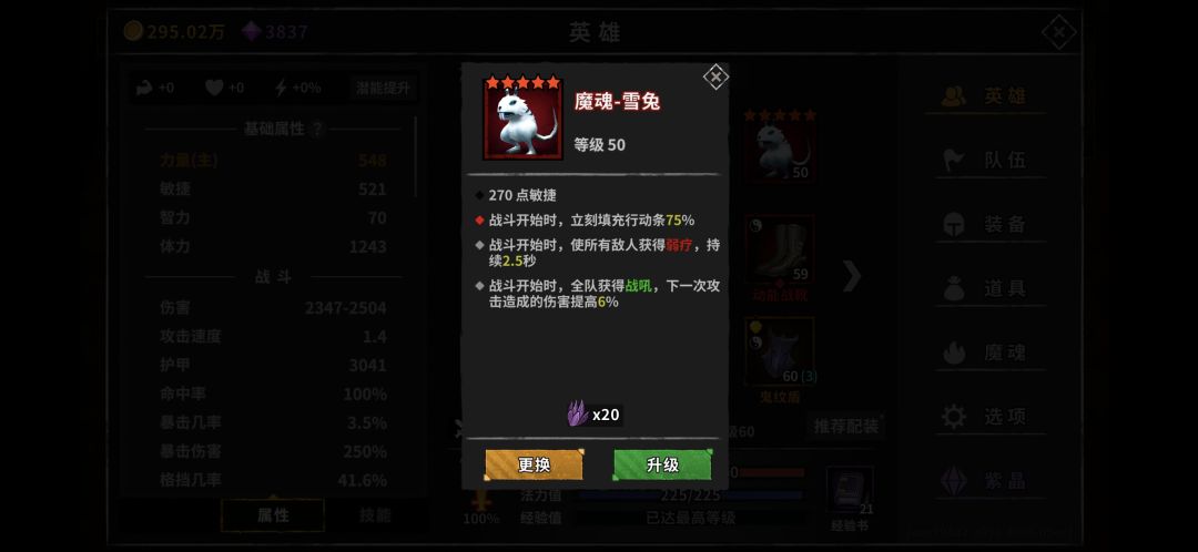 站前3动作兔子主魂因为是75兔子所以1攻速就可以先于怪物出手因此无攻速要求(可以全金币大词条,推荐打个防反弹大词条省的暴毙)