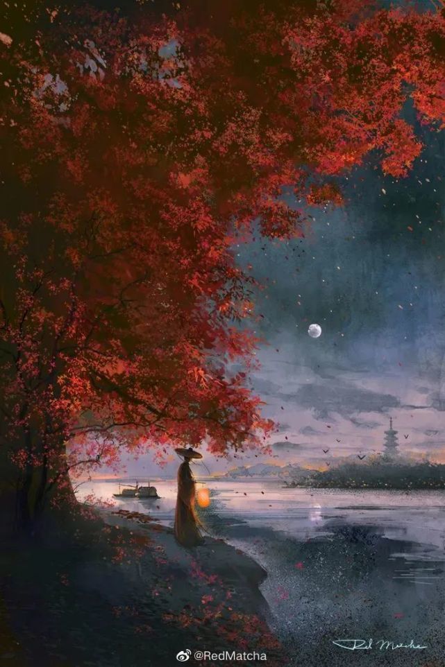 唯美意境插画欣赏:山河远阔,人间烟火