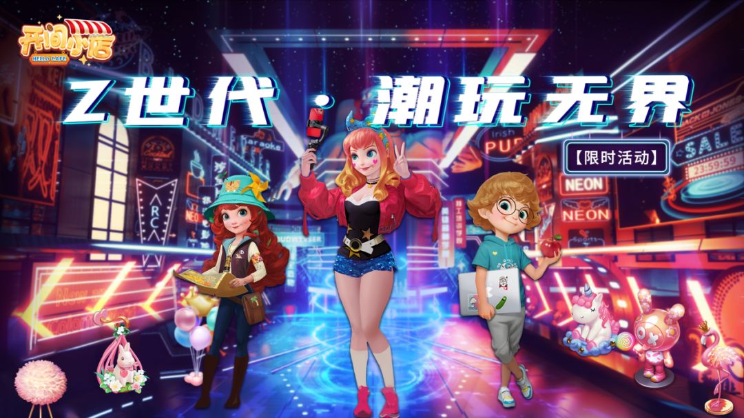 霓虹摇曳,潮玩无界,小店在经历过几次中国风装饰之后,迎来了新的年轻与活力,全新流光溢彩,霓虹都市来袭,新活动“Z世代•潮玩无界”即将上线,店长大人们拭目以待!