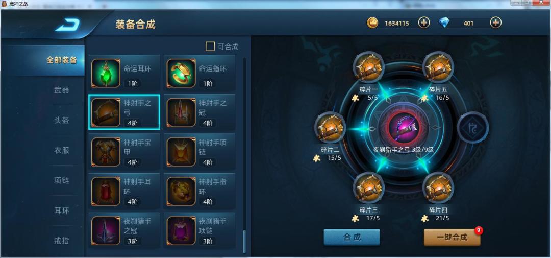 五:装备。装备分为一阶绿色、二阶蓝色、三阶紫色、四阶黄色共4个等级,装备碎片获得渠道为排位赛、领地杀敌、部分关卡底关奖励,装备进阶难度比较大,可能后期版本增加交易市场后难度要好一些,其中需要注意的是装备尽早洗练,因为可以继承到下一阶,绿装最高可以洗练出4星,蓝装最高可以洗练出6星,紫装最高可以洗练出8星,其中武器、指环、耳环最好洗练出攻击,头盔、铠甲、项链最好洗练出生命值。洗练石获取的渠道有每日任务、奖杯生涯、装备分解,其中最重要的是分解绿装,洗练石后期是不缺的。