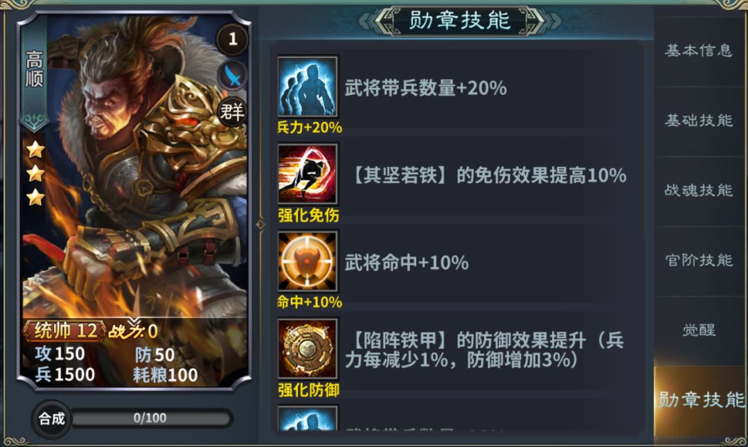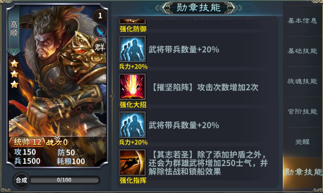 勋章技能:强化免伤防御,增加大招攻击次数,指挥技能加盾还能加士气