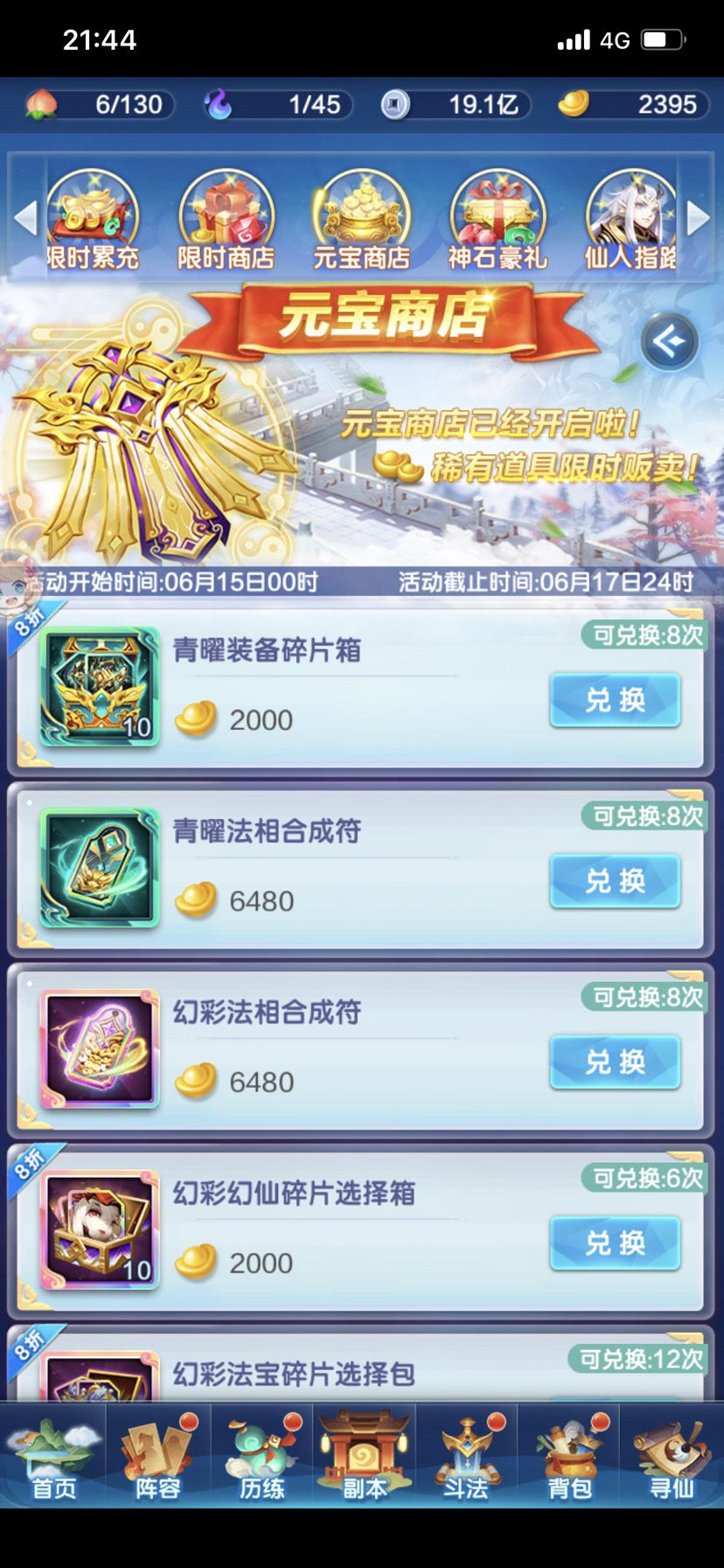 V4断档线争扎,06.15 情况如图,青装由于有产出,就没买了,剩2300元宝,06.15周三晚上记录