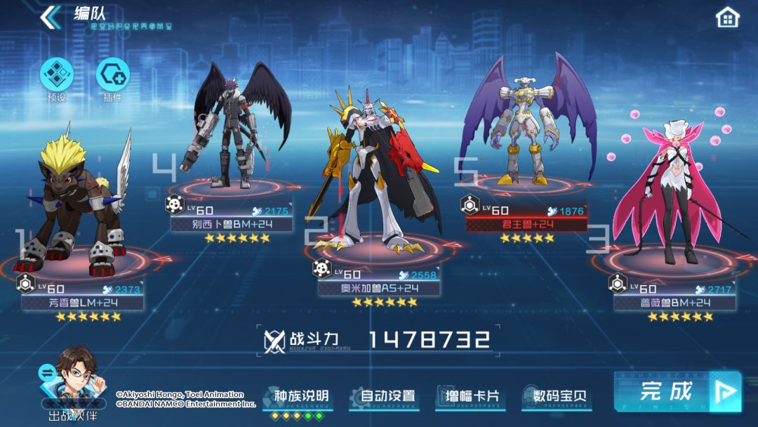 编队特色:芳香兽LM的奥义技的反伤效果可以有效地为阵容中的脆弱角色提供保护,奥米加兽AS为队伍提供了全面的增益效果,可以大幅提升君主兽与别西卜兽BM的伤害。蔷薇兽BM作为同时具有毒伤与治疗效果的数码宝贝,可以弥补奥米加兽AS恢复能力不足的问题。