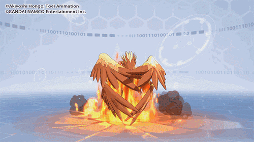 在新世纪中,火属性的四圣兽数码宝贝朱雀兽,可以在战斗中免疫冰冻状态,生命值归零时将化为火种,同时使我方全体免疫控制状态,火种存在指定数量的回合后,朱雀兽从火种中重生,并对敌方全体造成真实伤害。除此之外,通常技与奥义技皆可解除我方的控制状态,奥义技还能为目标附加灼烧状态,并无视其效果抵抗。得意技能够根据朱雀兽的最大生命值属性,为全体队友提供恢复效果,并附加抵抗控制状态哦~