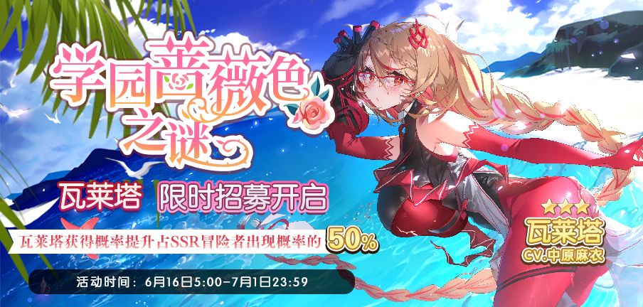 【学园蔷薇色之谜】SSR冒险者「瓦莱塔」限时招募今日开启——