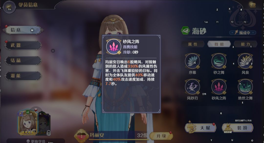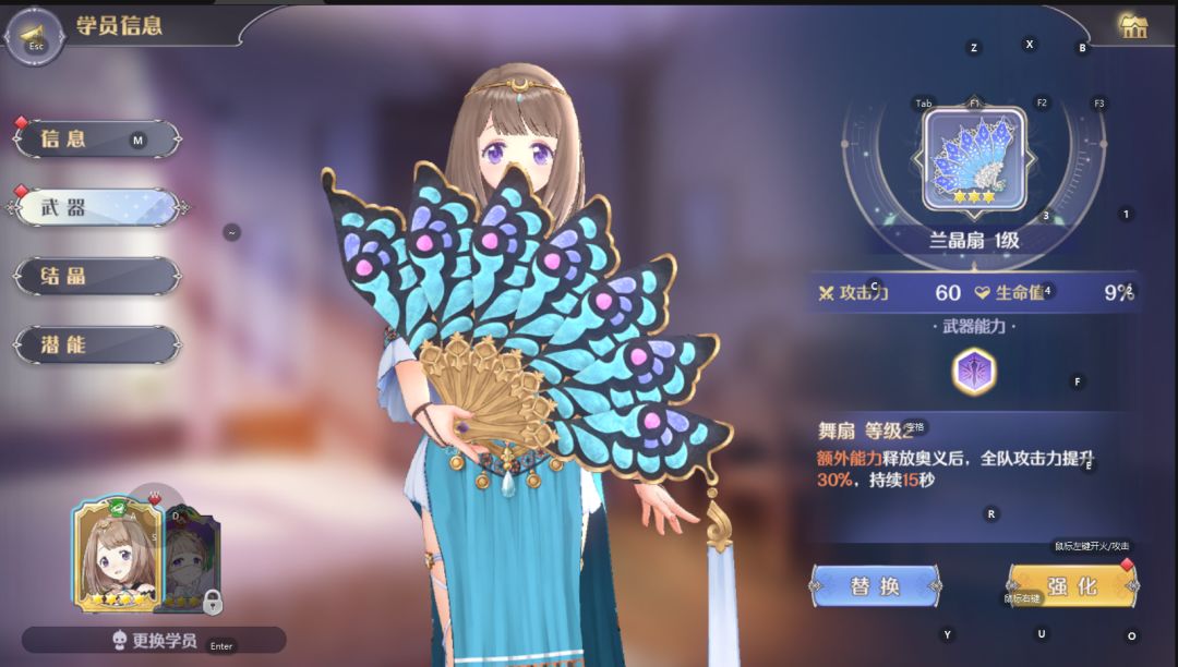 懂了吧。这个结晶牛在进图就有一点支援点,让你快速启动。而且最重要的是,推测这个结晶在巴别塔也有用(我上次忘了测了,我今天用试炼本测试,进图就有,也就是说它实际不仅限于冒险图)。其次,舞娘的奥义也很关键。提供高额减伤之外,武器还带辅助能力。因此我们必须要求玛娜回复。