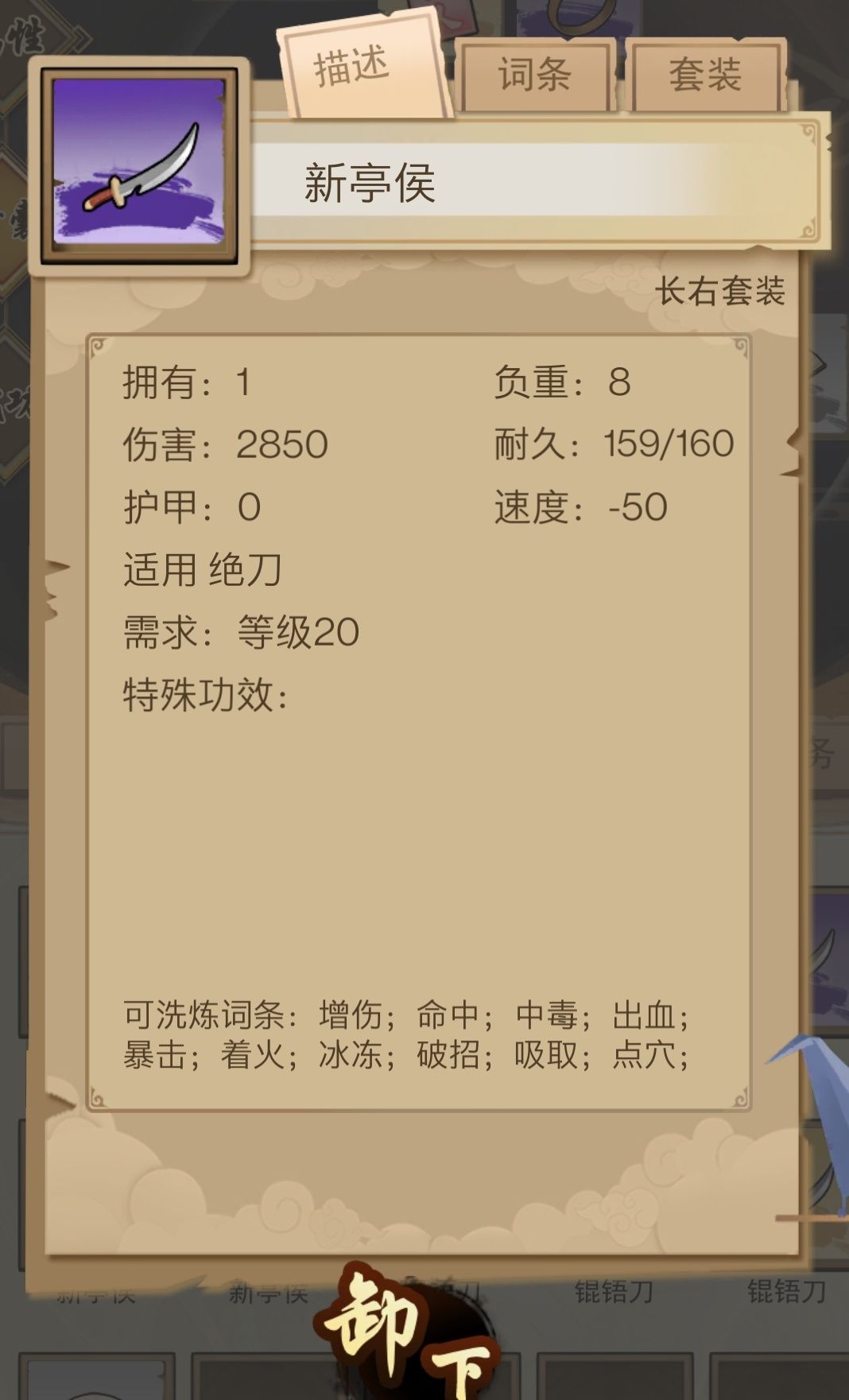 战斗中,进入下一回合的速度可由自己此回合所使用的武学对应的武器改变。