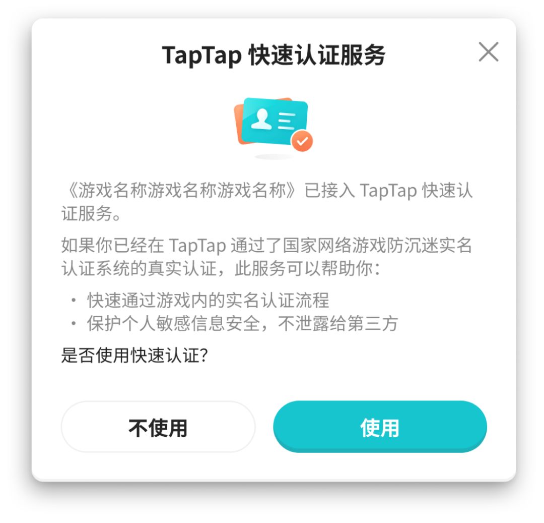 同时提供实名与防沉迷的全套界面,开发者可直接使用,减少研发成本。