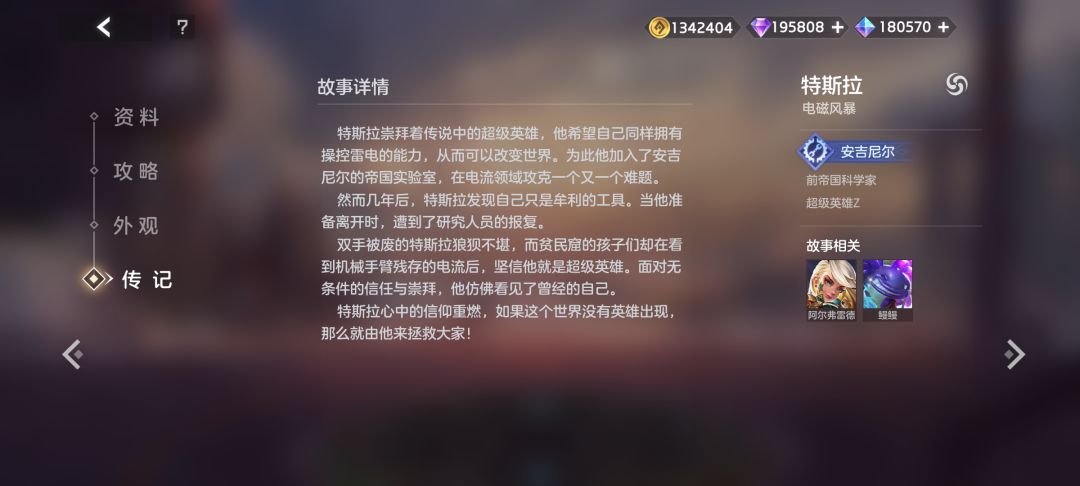 现在在每个英雄的界面都新增了传记栏目。点击可以看到小传,还能看到右侧他所属的阵营以及相关故事的英雄。