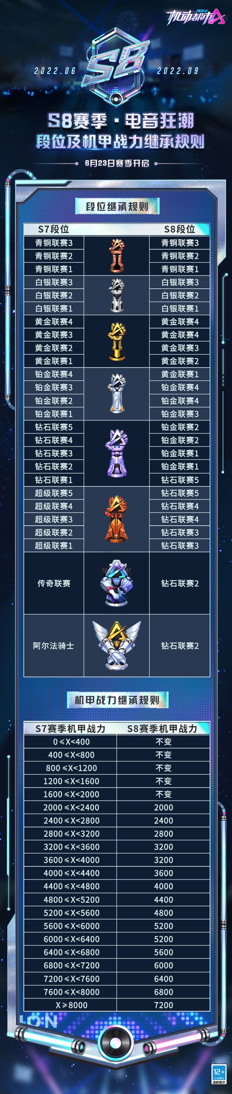 【S8赛季】段位及机甲战力继承规则