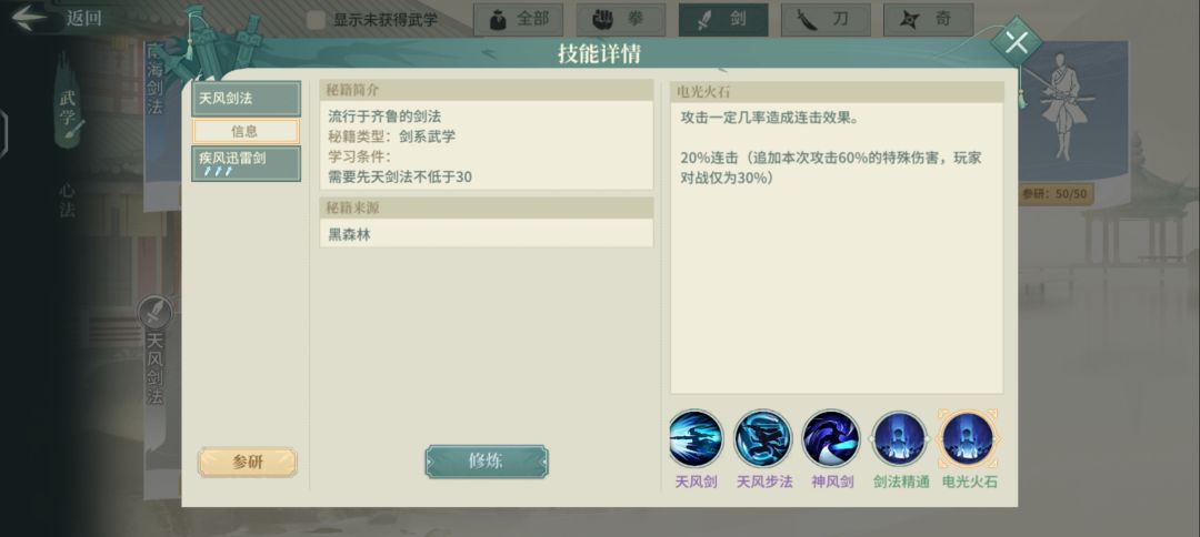 天风剑法本身可以增加连击概率,如图: