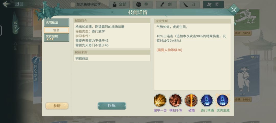 本帖目的为萌新排雷,总结一下有突破要求的一些通用甲乙武学!