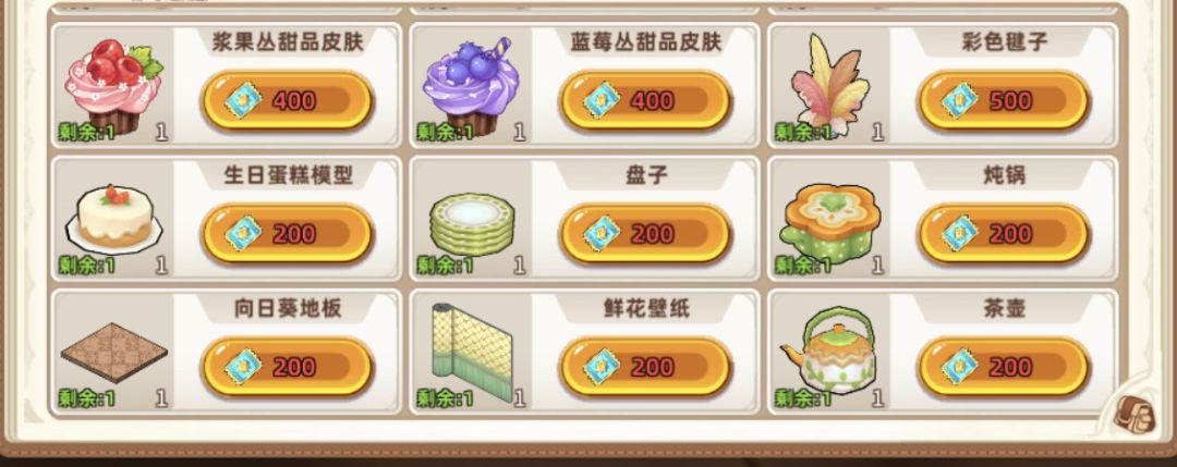 一、夏日餐车(500环境值+1个厨房格子)
