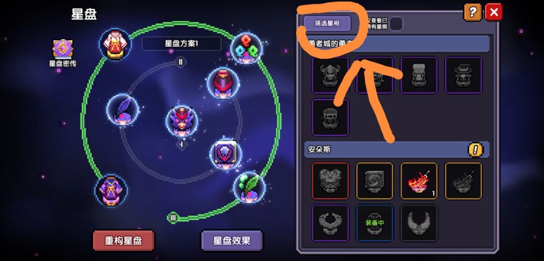 2、星环:BD攻略都有对应的搭配方案,在星环页面右上角有筛选功能。