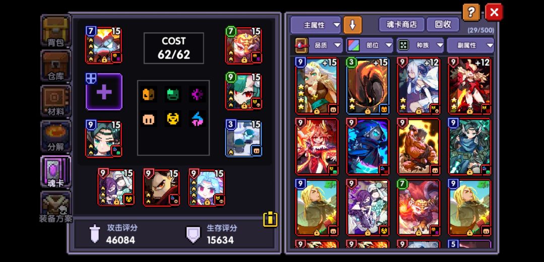 1、前期不建议赌卡!!!凑齐需要的魂卡拉满+15和凑个种族加成就行。
