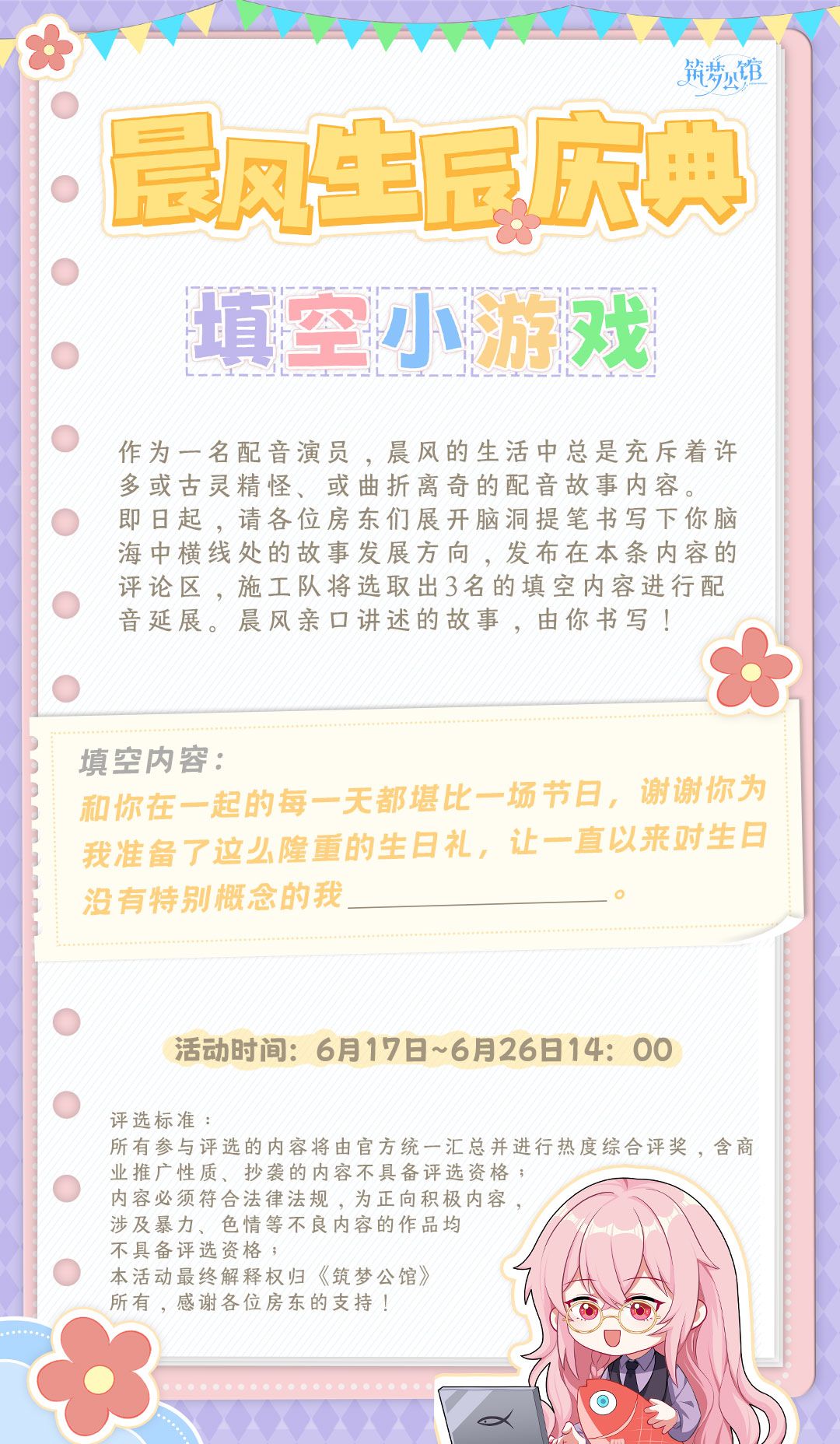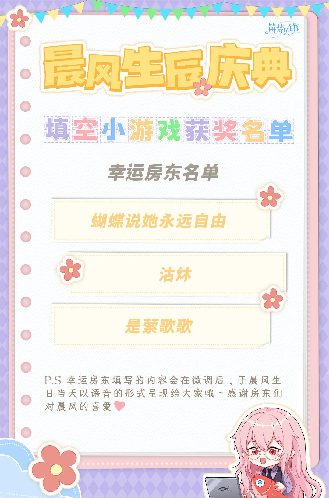 【筑梦公馆】晨风生贺庆典系列活动—— [生日语音定制活动]全面开启!(已开奖)