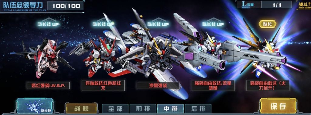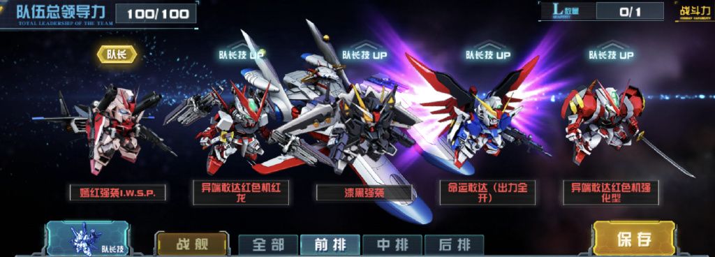 该阵容只有强袭自由敢达(火力全开)一台前排机体,看起来似乎变脆了很多,但是由于加入了拥有优秀闪避能力的漆黑强袭,再加上嫣红强袭I.W.S.P.的4技能可以有效解除Debuff,会达到意想不到的作战效果。