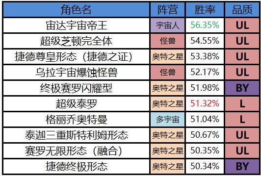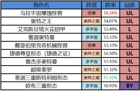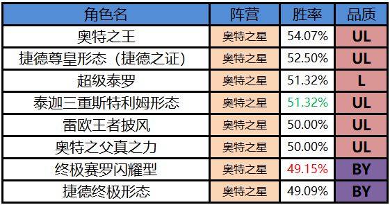 3、奥特之星阵营胜率