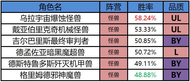 5、怪兽阵营胜率